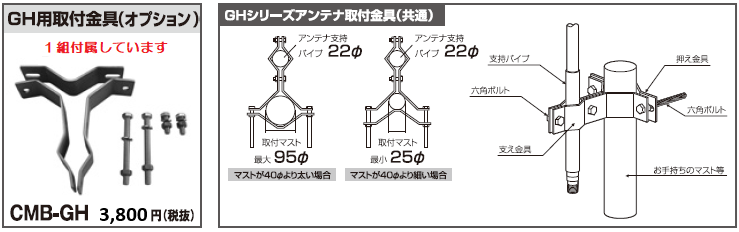 430MHz:7.2dBi (5/8λ 3段 ノンラジアル) -